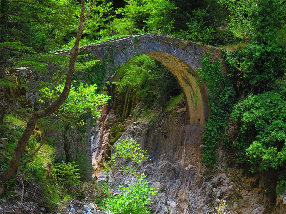 έλατα, με τα λιθόκτιστα σπίτια του να